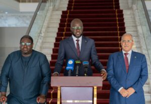 La discussion s’est très bien passée et nous avons apprécié la qualité des échanges et, ensemble, nous avons salué l’excellence des relations entre les deux pays pour dire que le Sénégal et la Mauritanie c’est, certes, deux Etats, mais un seul peuple. Et nous devons nous donner les mains pour renforcer cela mais surtout donner l’exemple à d’autres pays, notamment de l’Afrique de l’Ouest pour assurer la promotion de la paix et la stabilité qui sont le gage d’un développement endogène. Je vous remercie.”