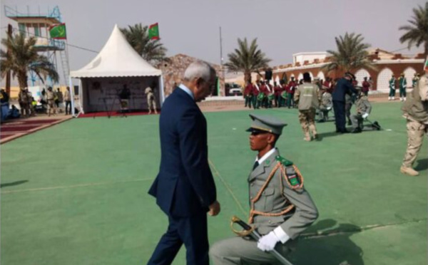 Le ministre de la Défense nationale, M. HananA Ould Sidi, accompagnée du chef d’état-major général des forces armées, le général de division Mokhtar Bella Chaabane, et du wali de l’Adrar, M....